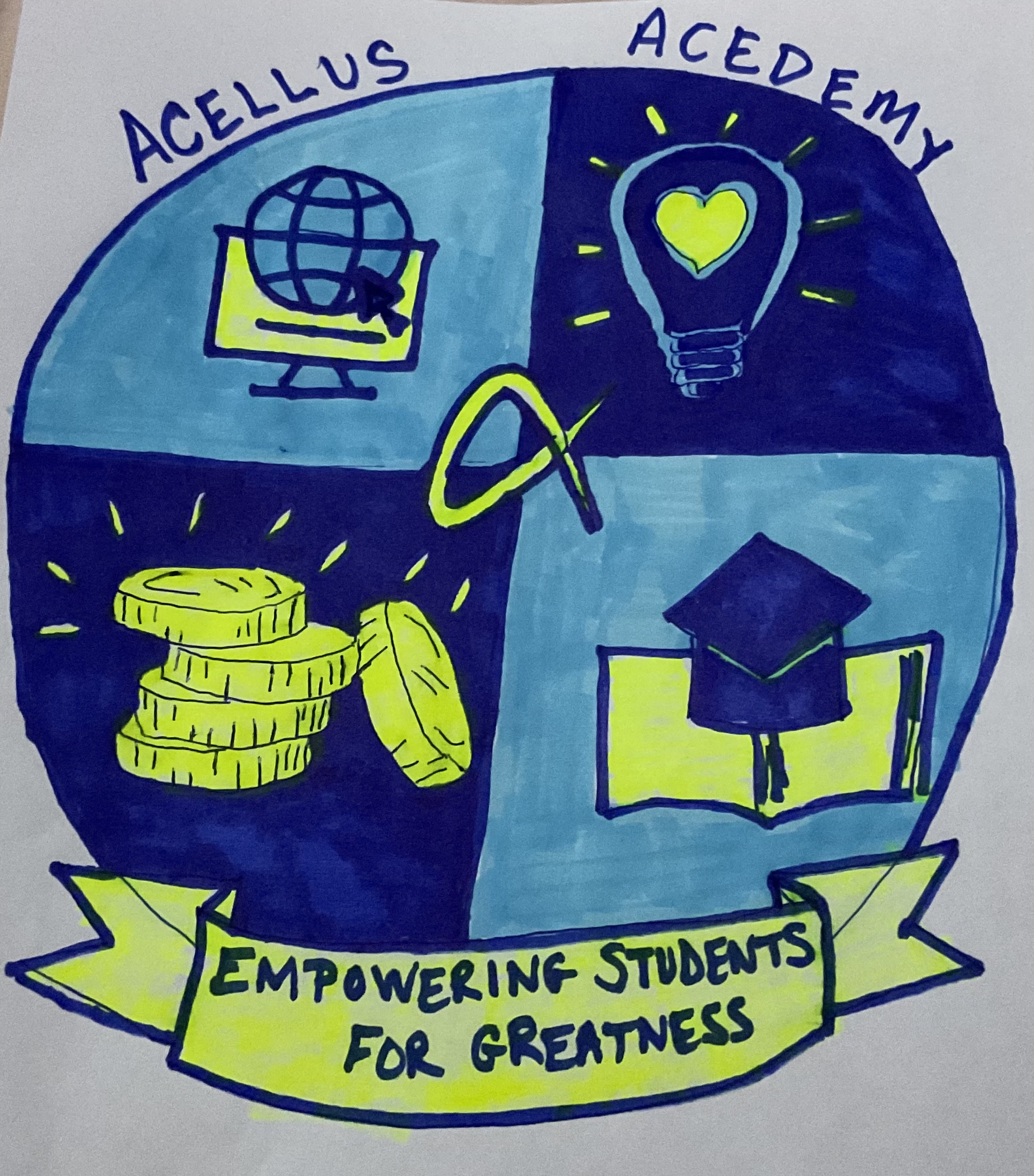 This is so cool! I think it’s an amazing design! I love your use of the Acellus colors, and how the yellow used throughout the drawing matches the gold color. My favorite parts of your design are the computer drawing in the top left, the stack of gold, and that heart you added within the light bulb on the top right. I feel like I always draw computers the same way, and the way you did it is totally new. The stack of gold is so detailed, it’s like you can feel its value, and that heart in the light bulb is such a profound touch, it truly shows how teachers who love what they teach create a lifelong love of learning in a student.